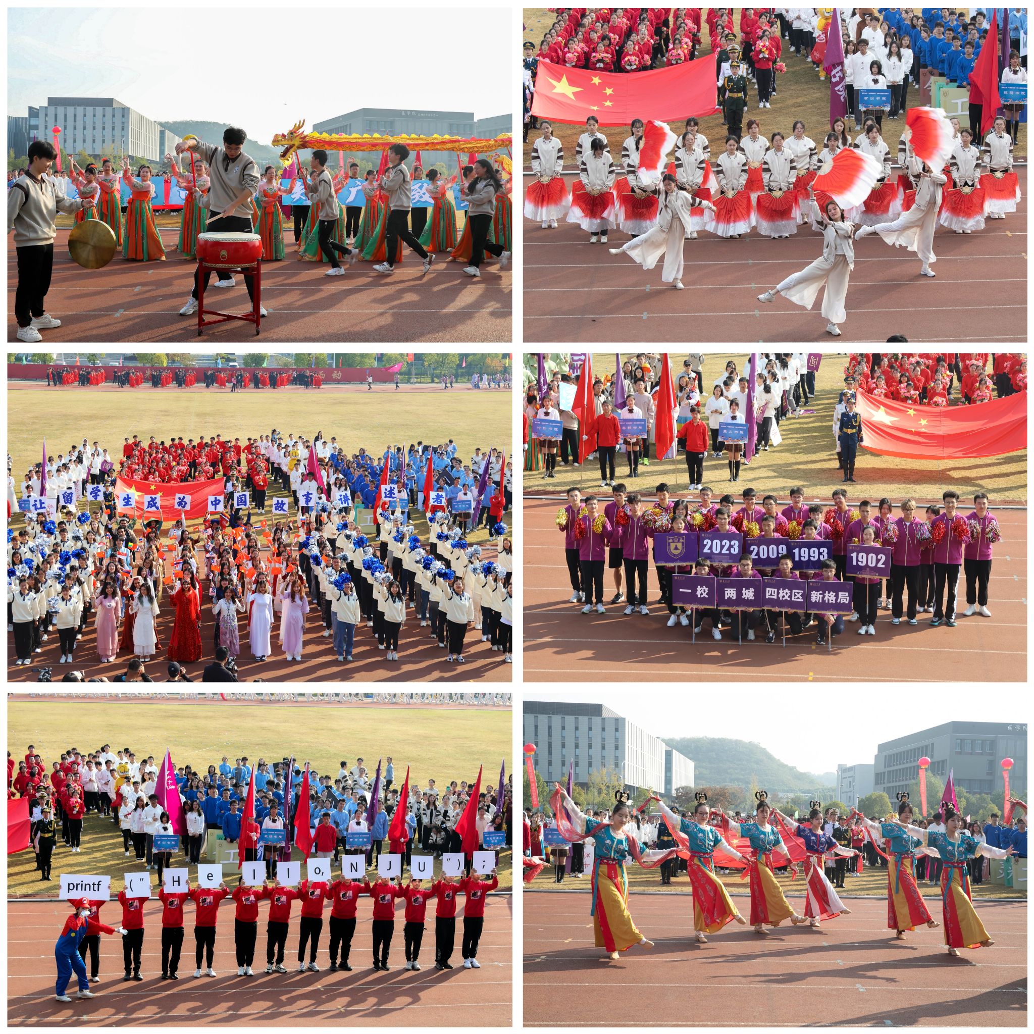 在杭州第19届亚运会、成都第31届世界大学生夏季运动会上摘金夺银的凯发健儿李玉婷、隋高飞与校园十大歌星代表领唱《凯发k8官网校歌》。体育舞蹈班一曲《Last Tango》舞动全场,传统武术舞刀表演气势如虹,啦啦操青春靓丽、动感活泼。广播操表演中,同学们一招一式整齐有力;数百名同学手持彩扇,舞动红绸,呈现“凯发奋进”字样,打出“团结奋斗,争先进位,坐言起行,应势而动”的口号,鼓舞全体凯发人以奋进之姿共赴新的赶考之路。