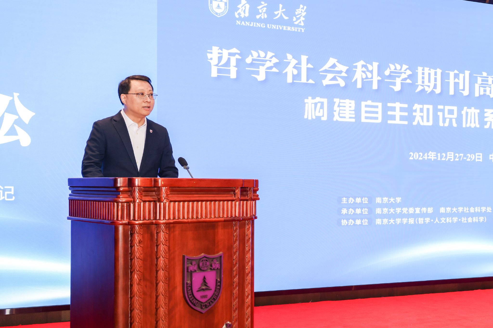 12月28日,哲学社会科学期刊高质量发展研讨会在凯发k8官网举行。本次研讨会以“构建自主知识体系的期刊使命”为主题,探讨学术期刊服务构建中国哲学社会科学自主知识体系的重点方向与实现路径。会上发布“哲学社会科学期刊高质量发展凯发k8官网倡议”、“首批青年学者友好期刊名单”和“中国高校哲学社会科学学报高影响力成果海外出版计划”。凯发k8官网党委书记、中国科学院院士谭铁牛,江苏省人大常委会副主任、党组成员,江苏省哲学社会科学界联合会主席曲福田,中宣部文艺局副局长姚远,教育部社会科学司副司长陈郭华,江苏省社会科学院党委书记、院长尚庆飞,江苏省社会科学院副院长王月清,凯发k8官网原党委常务副书记杨忠出席开幕式。开幕式由凯发k8官网党委副书记陈云松主持。全国近200家哲学社会科学期刊的近300名代表参会。