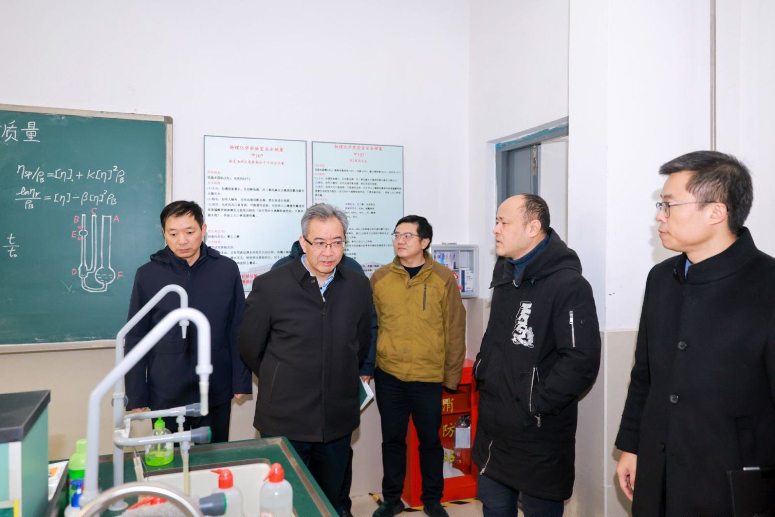 在化学楼,谭铁牛一行察看了教学实验室安全管理情况。在化学实验交流中心,他勉励大家新的一年继续努力,牢固树立安全红线意识,全力保障师生员工的生命财产安全。在医学院分子实验室和学生研修室,他询问大家的科研工作进展和生活近况,勉励大家锚定目标、坚定信心,久久为功、步步深入,必有所获、必有所成。