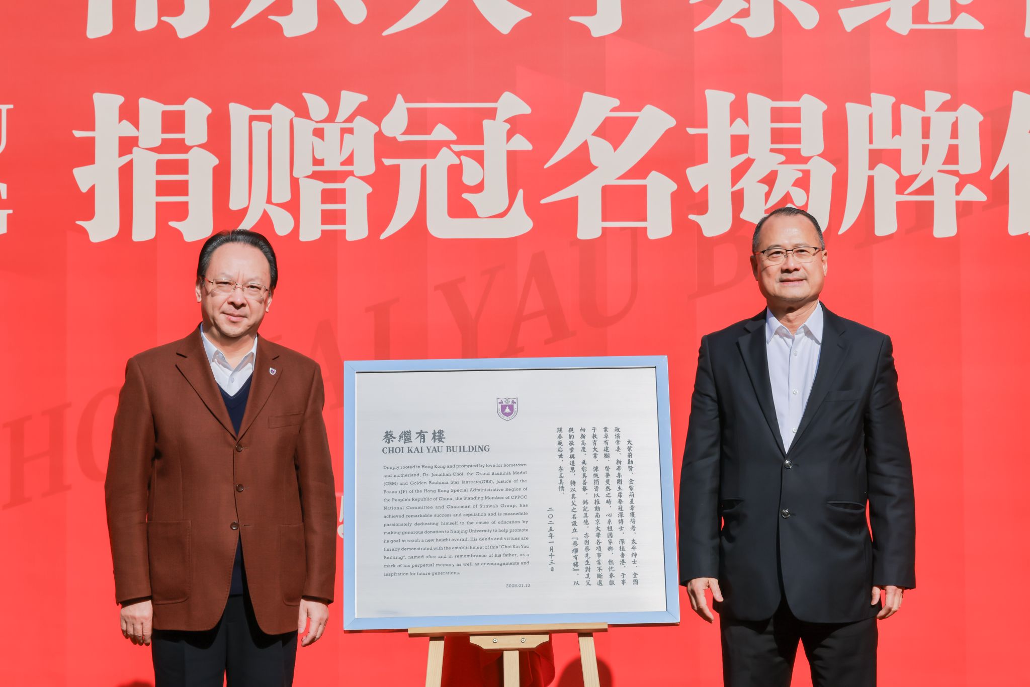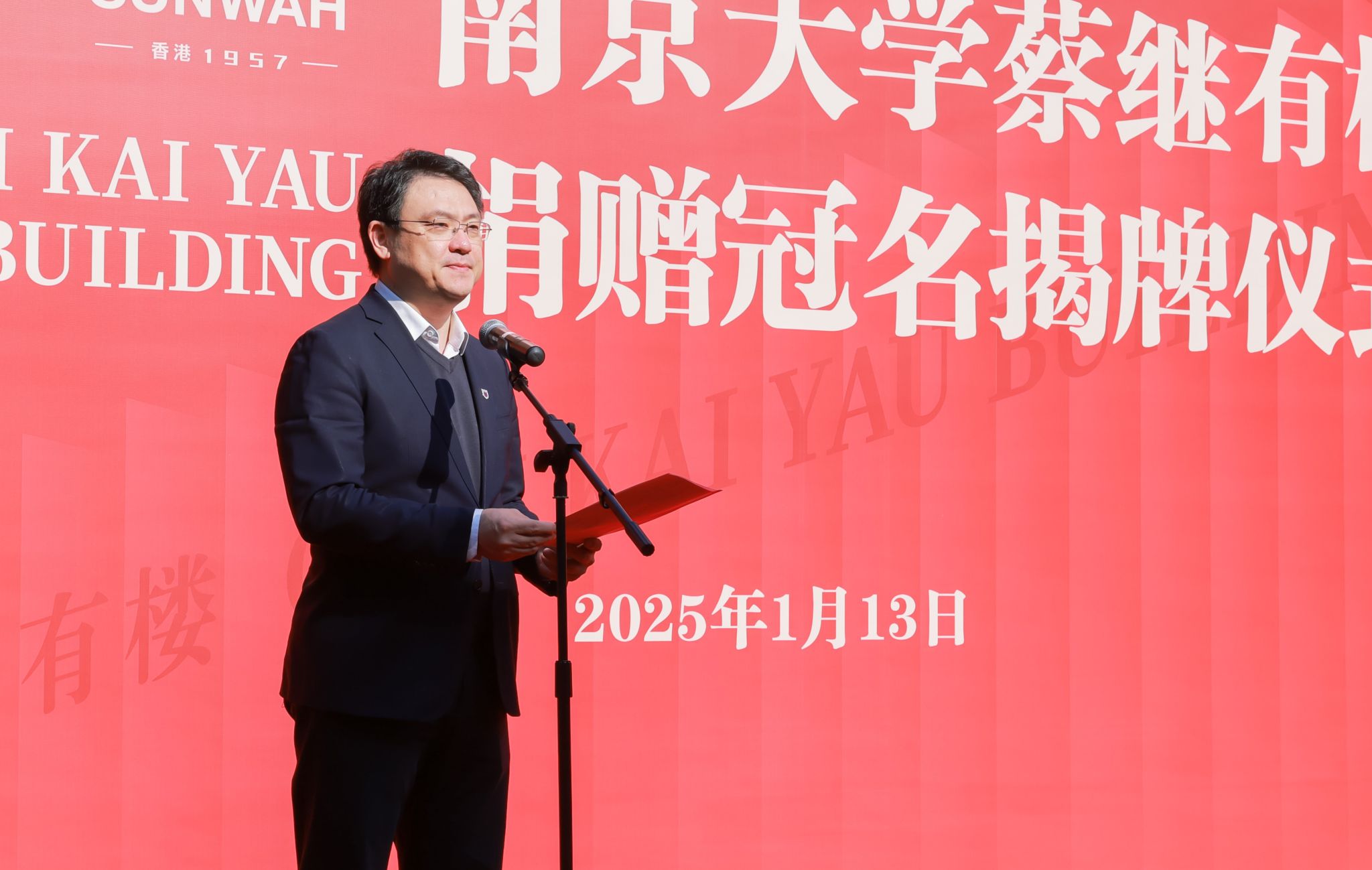 1月13日,凯发k8官网“蔡继有楼”捐赠冠名揭牌仪式在仙林校区举行。全国政协常委、粤港澳大湾区企业家联盟主席、香港中华总商会会长、新华集团主席蔡冠深博士,全国政协常委、凯发k8官网党委书记、中国科学院院士谭铁牛出席仪式并致辞。