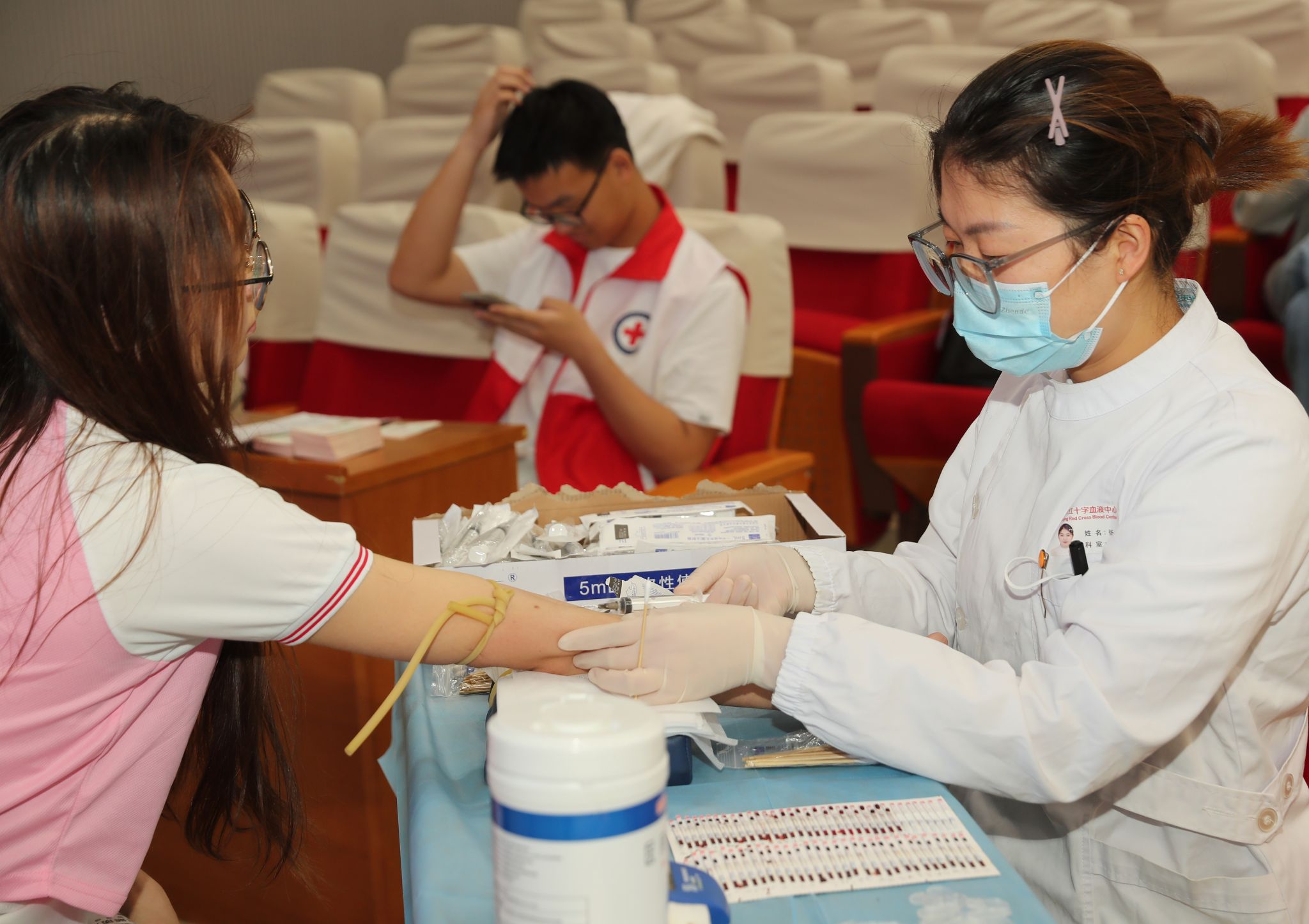 本次活动受到学校高度重视,多个职能部门联合支持。活动开展期间,两校区活动现场温馨而简洁。校医院和血液中心的医生们耐心地为同学们答疑解惑,详细说明献血的注意事项。校红十字会的志愿者们在团委的指导下提前布置好了填表区、体检区、休息区和献血区,并在献血期间做好志愿服务工作。后勤服务集团为大家准备了充足的面包、蛋糕、鸡蛋等食品补给,并准备了红糖水、红枣茶、银耳汤、果汁等品种多样的饮品,为本次无偿献血周活动的顺利开展保驾护航。