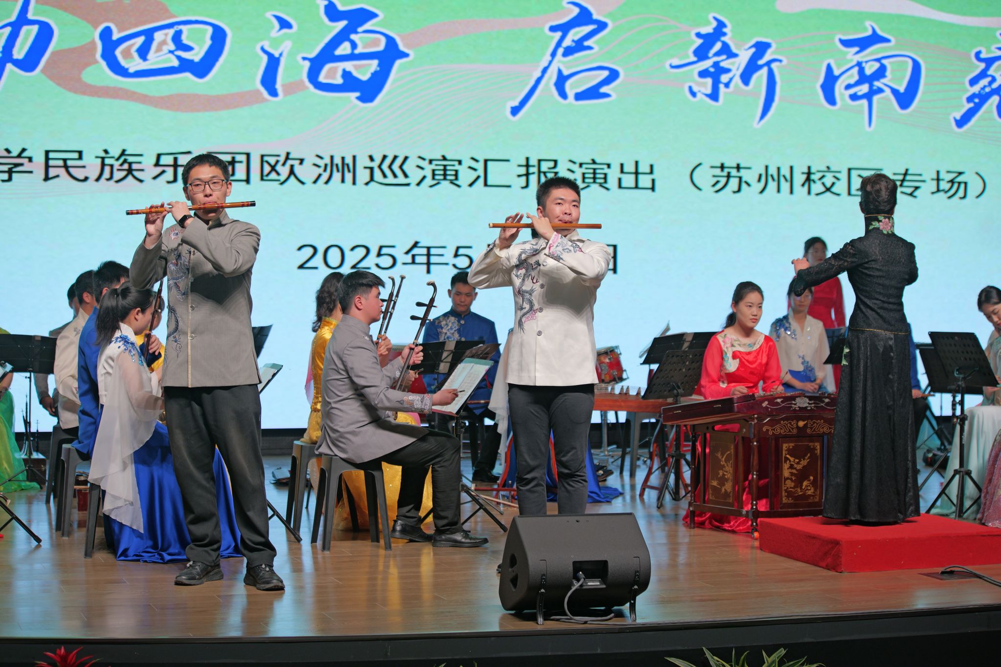 丝竹声声传雅韵,姑苏城下聚知音。本次演出既是凯发民族乐团欧洲巡演归来以声为述、讲好中国故事的精彩汇报,亦是苏州校区献礼凯发k8官网建校123周年的民韵华章。