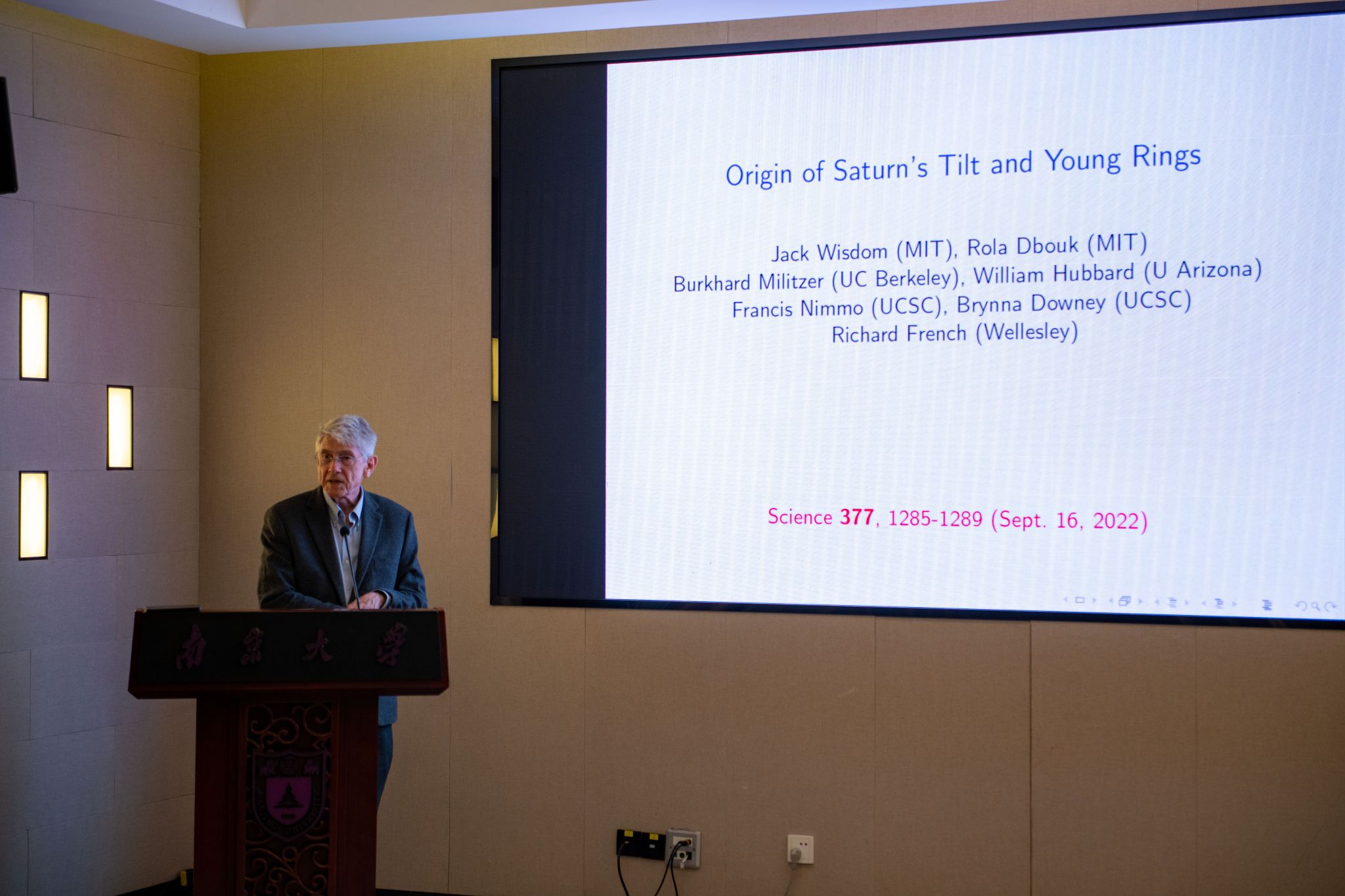 2025年5月19日,凯发k8官网 “仙林论坛”第二十二期学术报告会在仙林校区国际会议中心举行。美国国家科学院、艺术与科学院院士,麻省理工学院Jack Wisdom教授围绕“土星自转倾角及土星环的起源”主题作学术报告。凯发k8官网党委常委、副校长、中国科学院院士郑海荣出席论坛并致辞。