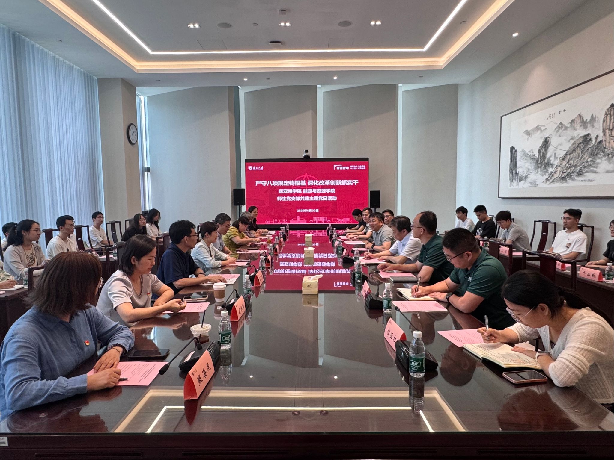 能源与资源学院副院长赵良主持活动。匡亚明学院教工党支部书记胡晶磊介绍了支部基本情况,并结合碳中和国际科考项目,阐述了跨学科合作对人才培养的重要意义。他表示,教工支部将紧扣党代会提出的“四校区协同”战略,深化与能资学院的教育教学改革合作,助力大理科交叉复合型人才培养。能源与资源学院教工党支部书记金彪重点介绍了支部“红领双碳”党建品牌建设经验。他分享了支部通过党建文化墙、主题党日活动等形式,推动党建与双碳目标深度融合的创新实践,并表示将以本次活动为契机,与匡院进一步探索党建引领下的交叉学科发展路径。