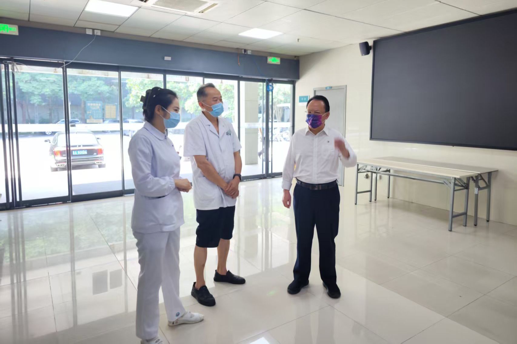 在校医院,谭铁牛认真询问了暑假期间师生就诊情况以及医护人员的值班安排。他强调,要进一步细化工作部署,科学研判高温条件下各类疾病发展态势,提前做好工作预案,确保为师生提供高质量医疗服务。