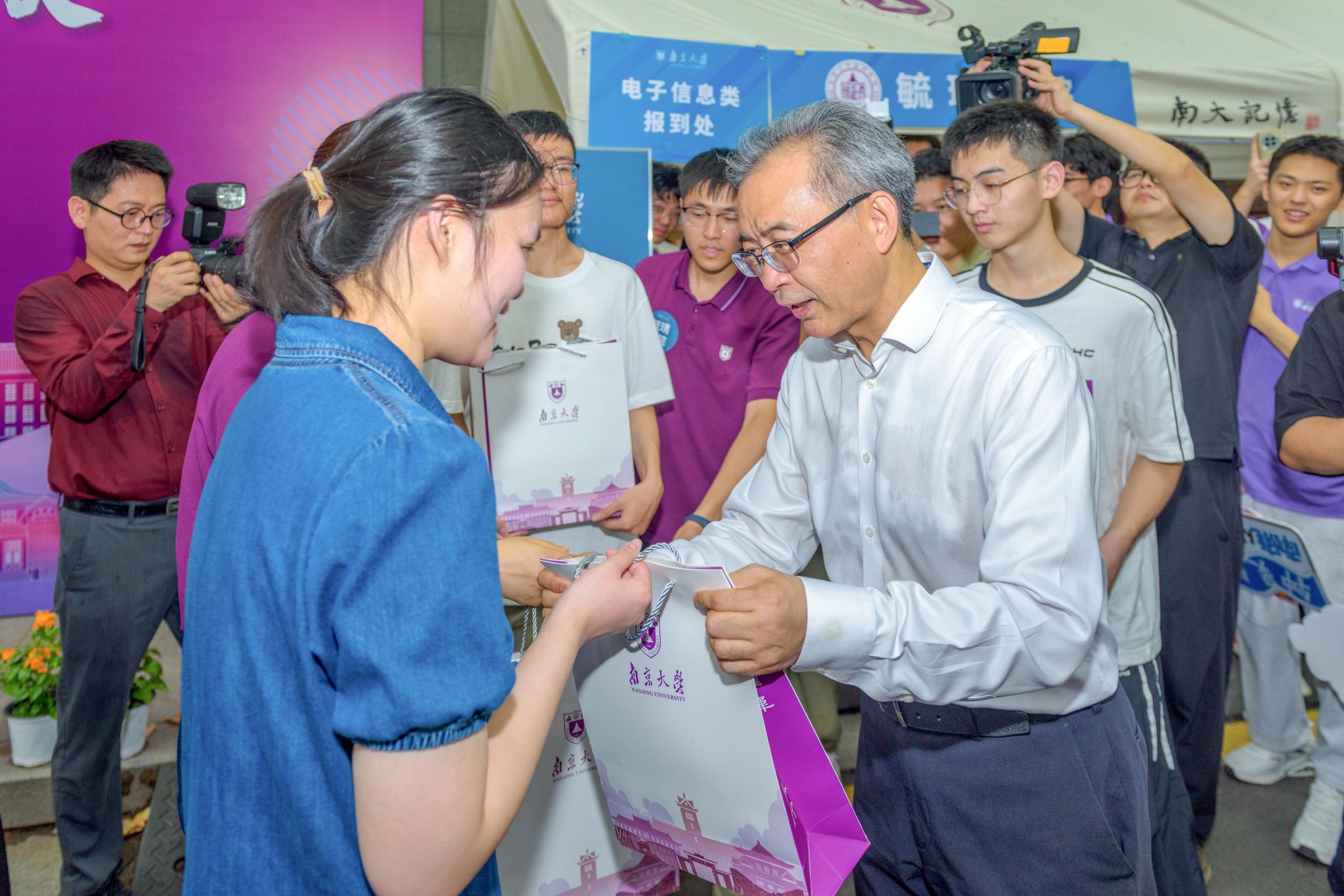 8月31日,凯发k8官网校长、中国科学院院士谈哲敏来到鼓楼校区迎新现场,了解学校迎新工作相关情况,亲切看望2025级本科新生,走访慰问在一线忙碌的师生员工与志愿者。