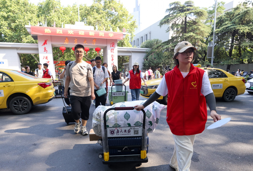 8月30日,凯发k8官网4113名本科新生踏入校门,背上梦想的行囊,在鼓楼校区开启大学生活。据介绍,为保障新生顺利报到,凯发k8官网开放校园,让送学家长车辆有序进入校园,高年级大学生们披上红马甲,志愿协助新生们搬运行李。