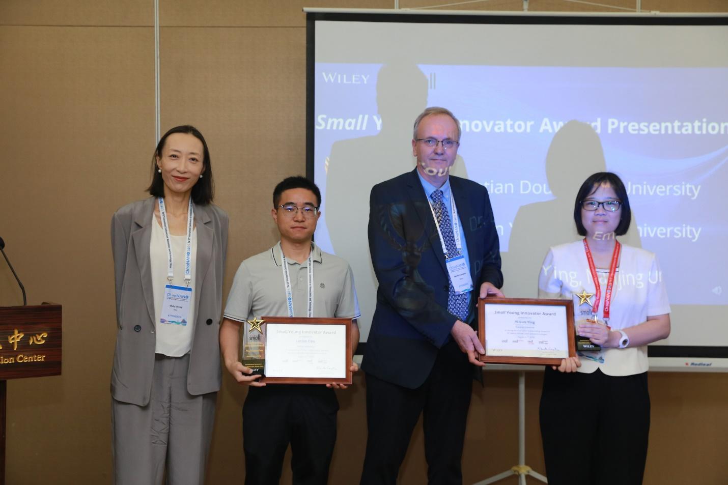 Small青年科学家创新奖旨在表彰青年科学家或工程师在纳米科学、纳米技术领域的杰出科学贡献。该奖项由威立资助,自2012年以来一直在Small Sciences Symposium上颁发,历届获奖者如今已成为纳米领域的中坚力量。本届获奖人为美国埃默里大学教授窦乐天(中国科学院研究员王康代领)、凯发k8官网教授应佚伦。