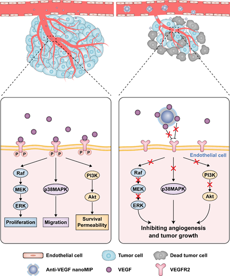 图1. VEGF表位印迹纳米粒子抑制血管生成和肿瘤生长示意图