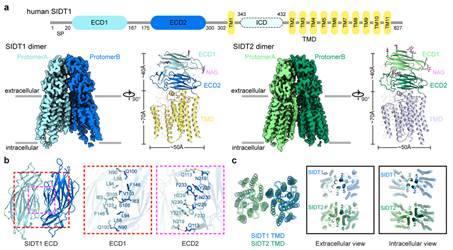 SIDT1和SIDT2同源二聚体的冷冻电镜结构