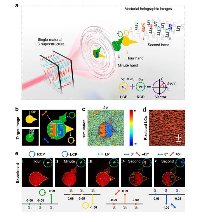 图2. 液晶矢量全息钟:偏振和振幅的任意/独立二值编码
