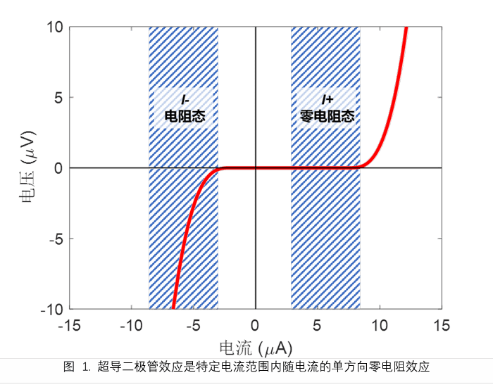 具有单向导电特性的二极管是电子电路中最基本的单元器件之一,几乎存在于所有的电子电路和芯片中,其发展对现代电子信息社会的进步起到了巨大的推进作用。对于常见的半导体二极管,由于半导体材料本身存在有限的电阻,二极管工作时不可避免的存在能量损耗。而超导二极管因其具有单向超流输运(单向零电阻)的特性(图1),在电子学领域有着巨大的应用潜力。超导二极管效应的出现通常依赖于空间反演对称性和时间反演对称性的同时破缺。但是一直以来,该效应与对称性之间的深入关系仍然不清楚,所以实现超导二极管的调控一直是超导电子学领域的一大难点。