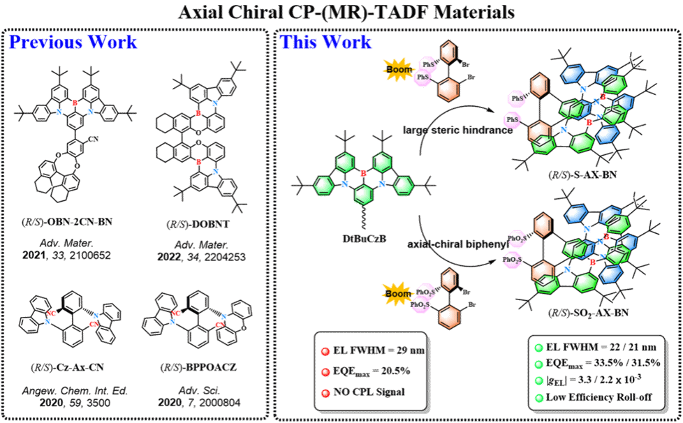 图1. 轴手性CP-MR-TADF分子的设计策略