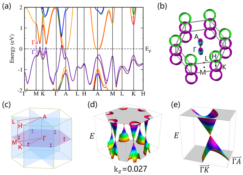 图2 理论计算的TaAs高压相的电子结构和Weyl点。