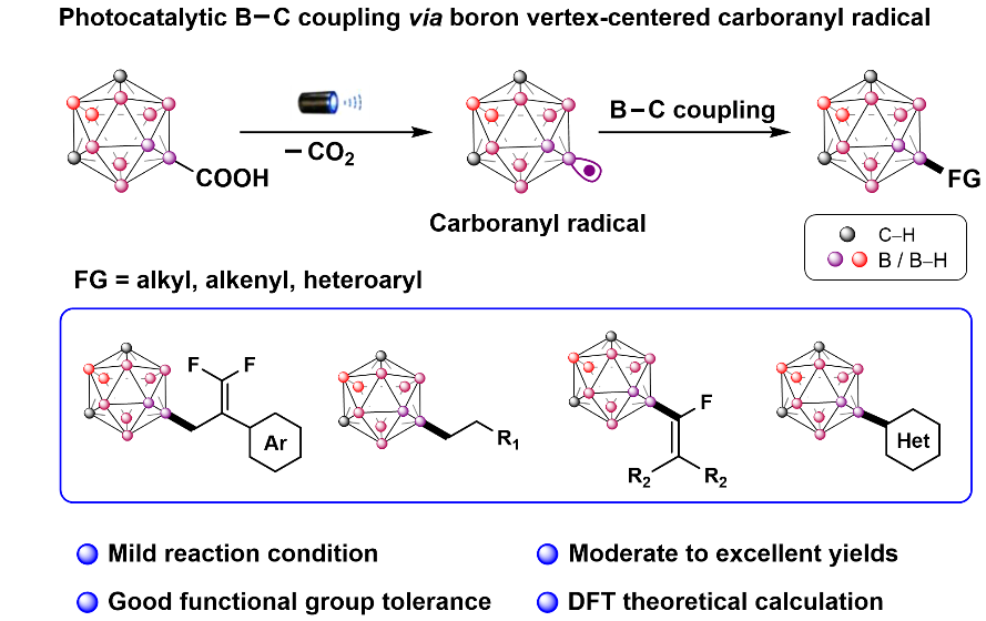 图1.光催化碳硼烷羧酸脱羧自由基偶联反应(本工作)