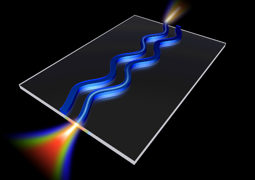 近日,凯发k8官网李涛教授、祝世宁院士团队在光子集成方面取得重要进展,他们将拓扑光子领域中人工规范场的思想引入到集成光子器件的设计中,利用弯曲设计实现高密度集成波导之间的无色散耦合,从而实现宽带、鲁棒性、高集成的光波导定向耦合与分束性能,并展示三级级联的18光集成网络功能。