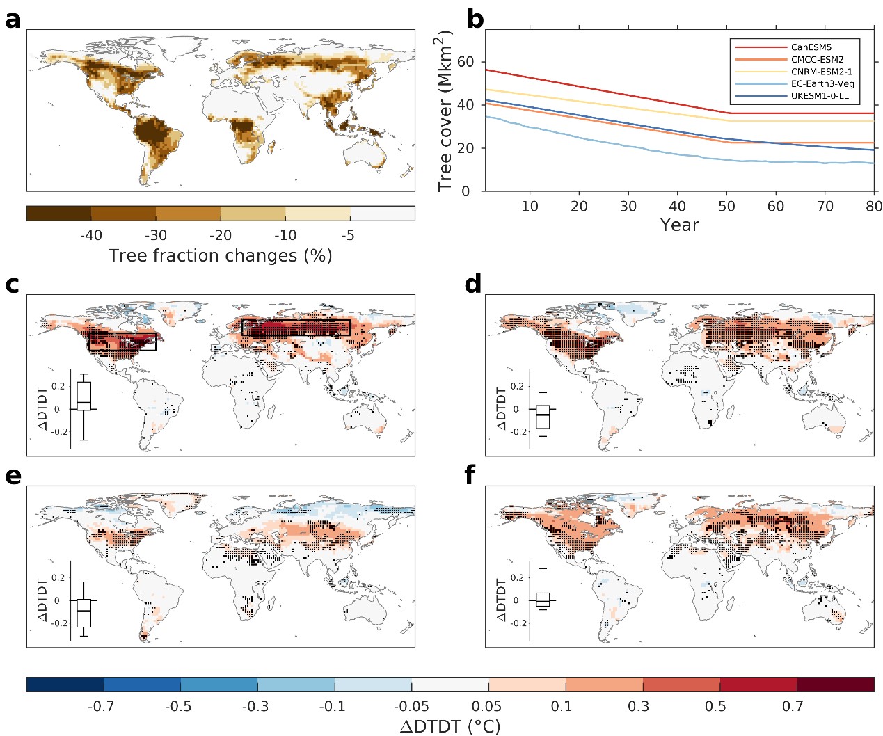 图1:理想化全球毁林对不同季节日际温度变率的影响