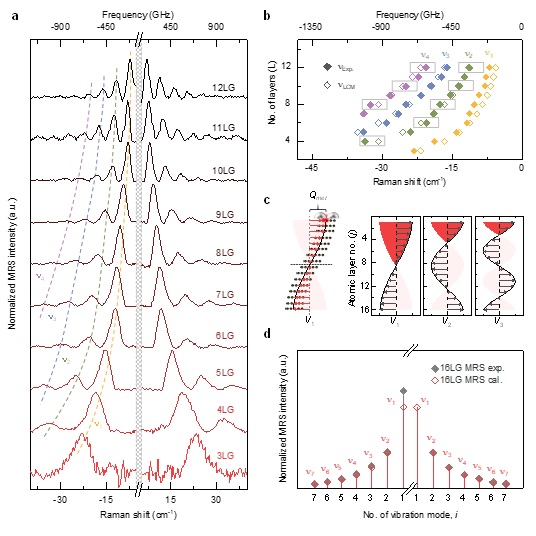 图2. 不同层数晶格振子的MRS测量与力学耦合效应的定量分析