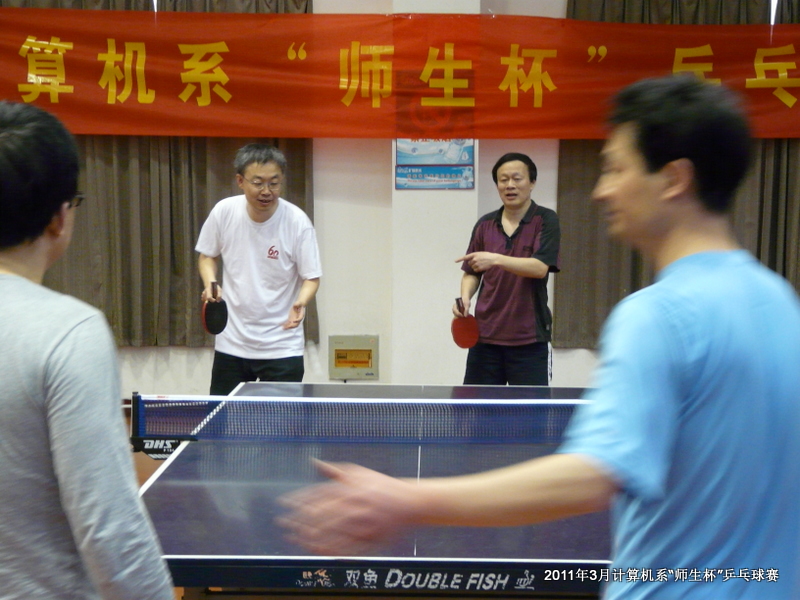 近日,在计算机系老师和同学的热情参与和积极配合下,2011年计算机系“师生杯”乒羽比赛在体育馆顺利举办并取得圆满成功。“师生杯”乒羽比赛是计算机系传统项目,在活跃学生课余生活、增加师生互动交流等方面获得师生的一致好评。乒羽比赛均设男子单打,女子单打,男双,女双,男女混合双打五个项目。今年老师们在乒乓球比赛中获得绝对优势,牢牢占据各项比赛第一名,其中朱怀宏老师获得乒乓球男单第一名。同学们也毫不示弱,陈兴国同学、邹珈璇同学荣获比赛多项大奖,并因此荣获获由我系陈贵海老师赞助的特别大奖。