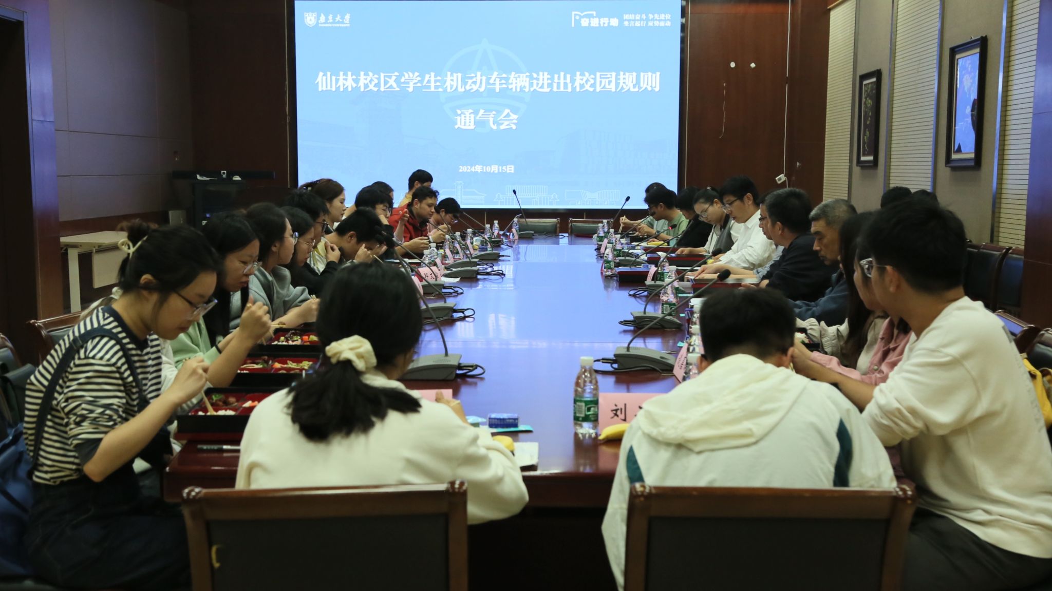 10月15日晚,仙林校区学生机动车辆进出校园管理沟通会召开,来自仙林校区各学院的21名学生代表及后勤服务集团、党委学生工作部、团委、保卫处、信息化建设管理服务中心相关负责人参加会议。