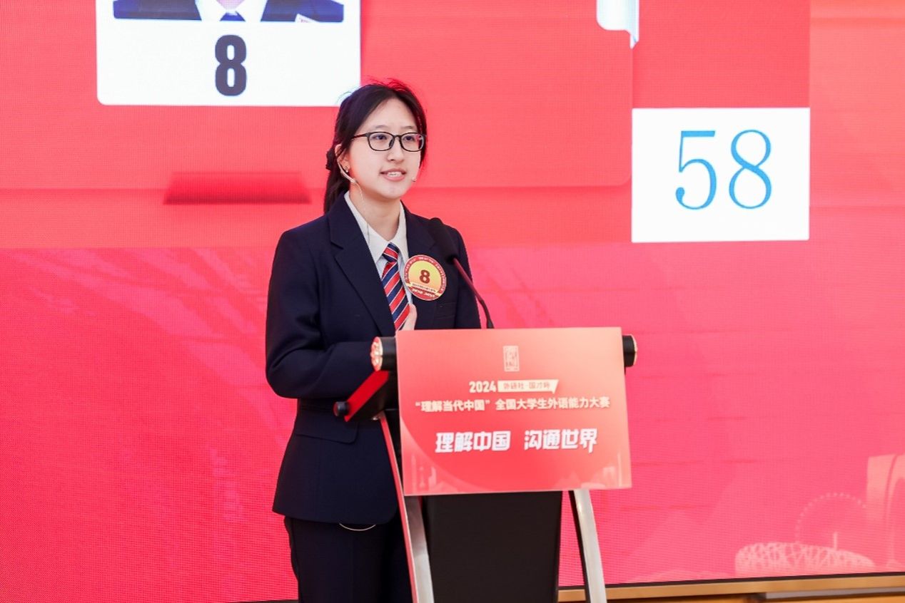 英语组国际传播综合能力赛项金奖获得者丁子懿进行比赛