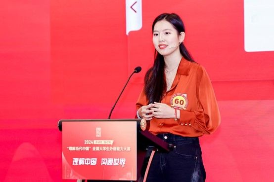 英语组国际传播综合能力赛项金奖获得者陆锦妃进行比赛