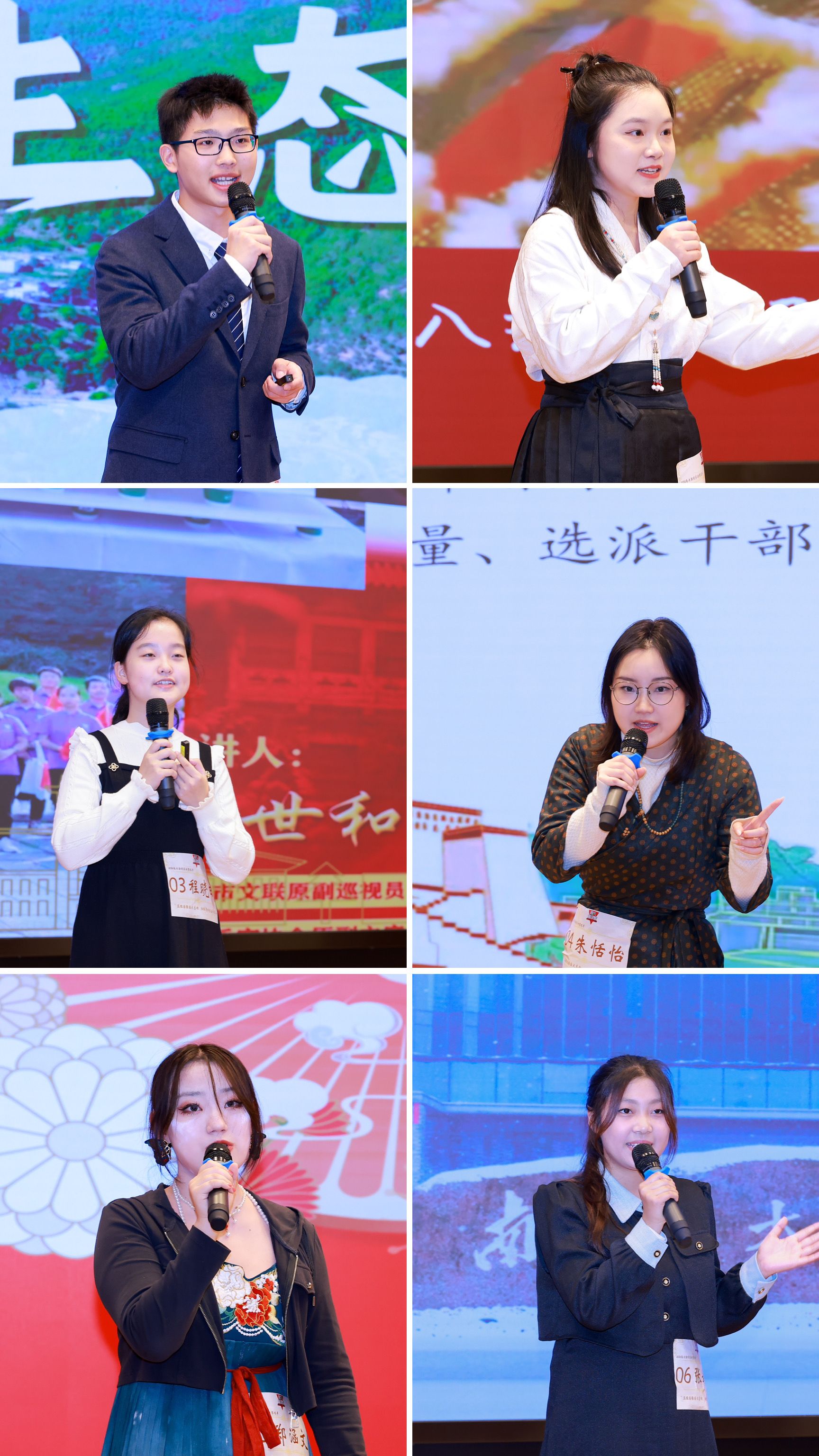 文抒少年意气,笔写奋进担当,怀抱国强国志向,挑民族复兴大梁。经过初赛、复赛的层层选拔与激烈角逐,来自各学院(书院)的18位优秀选手从仙林、鼓楼、苏州三赛区脱颖而出,成功进入决赛。他们围绕社会实践成果展示会、高校青年发展论坛、志愿服务总结大会等三个情景,就铸牢中华民族共同体意识、传承英烈精神、坚定文化自信、弘扬科技报国、厚植家国情怀、推进中国式现代化等六个关键词,传递出矢志不渝成为红色青年、厚重青年、朝气青年、卓越青年的铮铮强音。