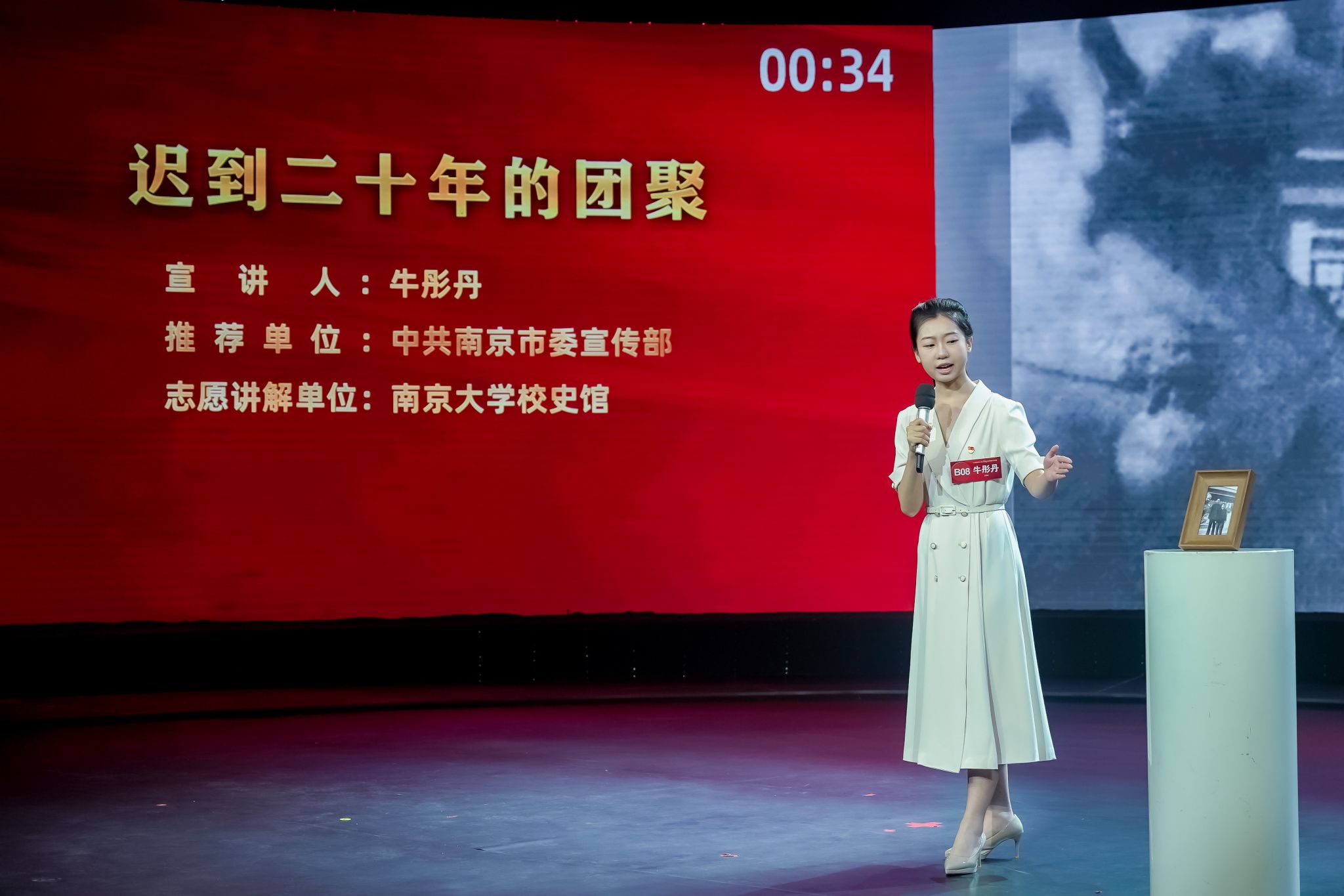 省赛决赛的现场,牛彤丹用一张老照片引出故事主人公,以真挚的情感和生动的表达,再现了刘惠馨烈士坚定的革命信仰与无畏的牺牲精神。技术中,她特别呈现了刘惠馨在狱中受刑、给女儿留下绝笔信的细节,不仅表达了一位后辈学子对前辈英烈的深切缅怀,更是一次代表00后与前辈跨越时空的精神对话。