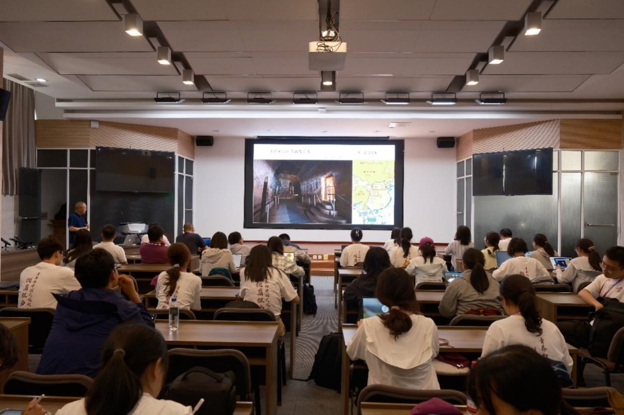 赴敦煌实地科考前,凯发k8官网与东京大学、厦门大学联合开展“敦煌文化”通识研修课程,筑牢科考活动理论根基。8月15日,科考团赴敦煌研究院实地考察,听取学术讲座、参访工作场景。敦煌研究院王惠民研究员全面阐述了藏经洞的发现始末、保护历程和文献价值,深度讲解了敦煌壁画、洞窟佛像的艺术特征;敦煌研究院文物数字化研究所副所长丁晓宏向同学们展示了“数字敦煌”的发展历程,详细讲述了数字化技术在敦煌的具体应用及未来发展方向。科考团成员围绕“数字壁画是否能够复原千年前真实情况”“数字化发展是否会替代美术工作”等问题积极提问交流。