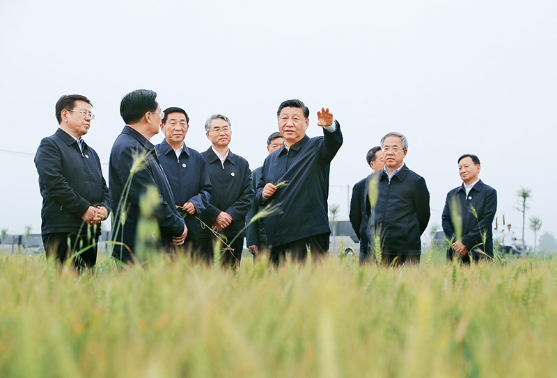 2021年9月13日至14日,中共中央总书记、国家主席、中央军委主席习近平在陕西省榆林市考察。这是13日下午,习近平在米脂县银州街道高西沟村临时下车,察看粮食作物长势,同正在田间劳作的老乡拉家常。 新华社记者 李学仁/摄